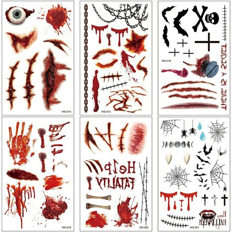 ハロウィン 飾り タトゥーシール 顔シール クモ 傷 フェイスシール ハロウィン 飾り ボディシール 血のり お化け 不気味ないたずら ハロウィン メイクシール コ