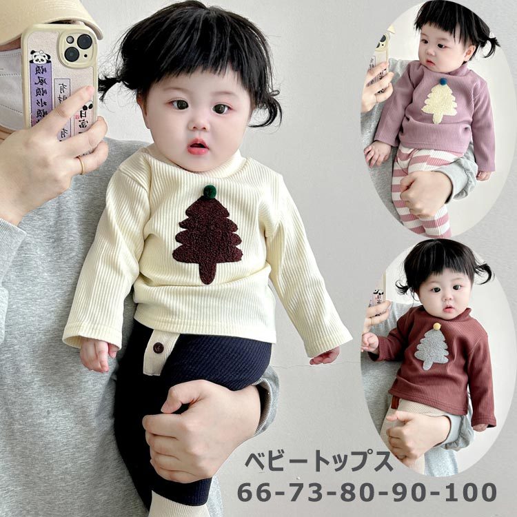 長袖 Tシャツ ツリー 木 クリスマス 誕生日韓国子供服 女の子 部屋着 可愛い 春夏秋冬 オールシーズン ベビー長袖Tシャツ トップス レース ガールズ 秋冬新作 送