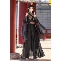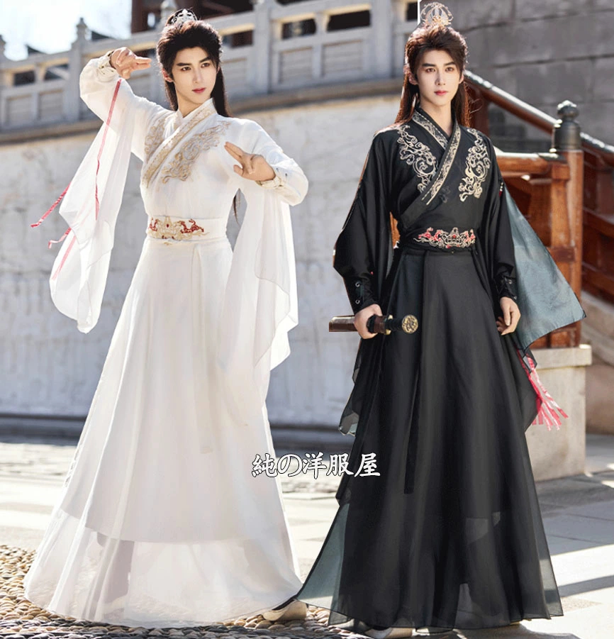 漢服 メンズ チャイナ服 男女兼用 中華服 中国古代服装 袖カバー付き 華やか 中華古代コスプレ衣装 男性 女性 大人 黒 白 袖フリル エスニック 花刺繍 交差襟 武