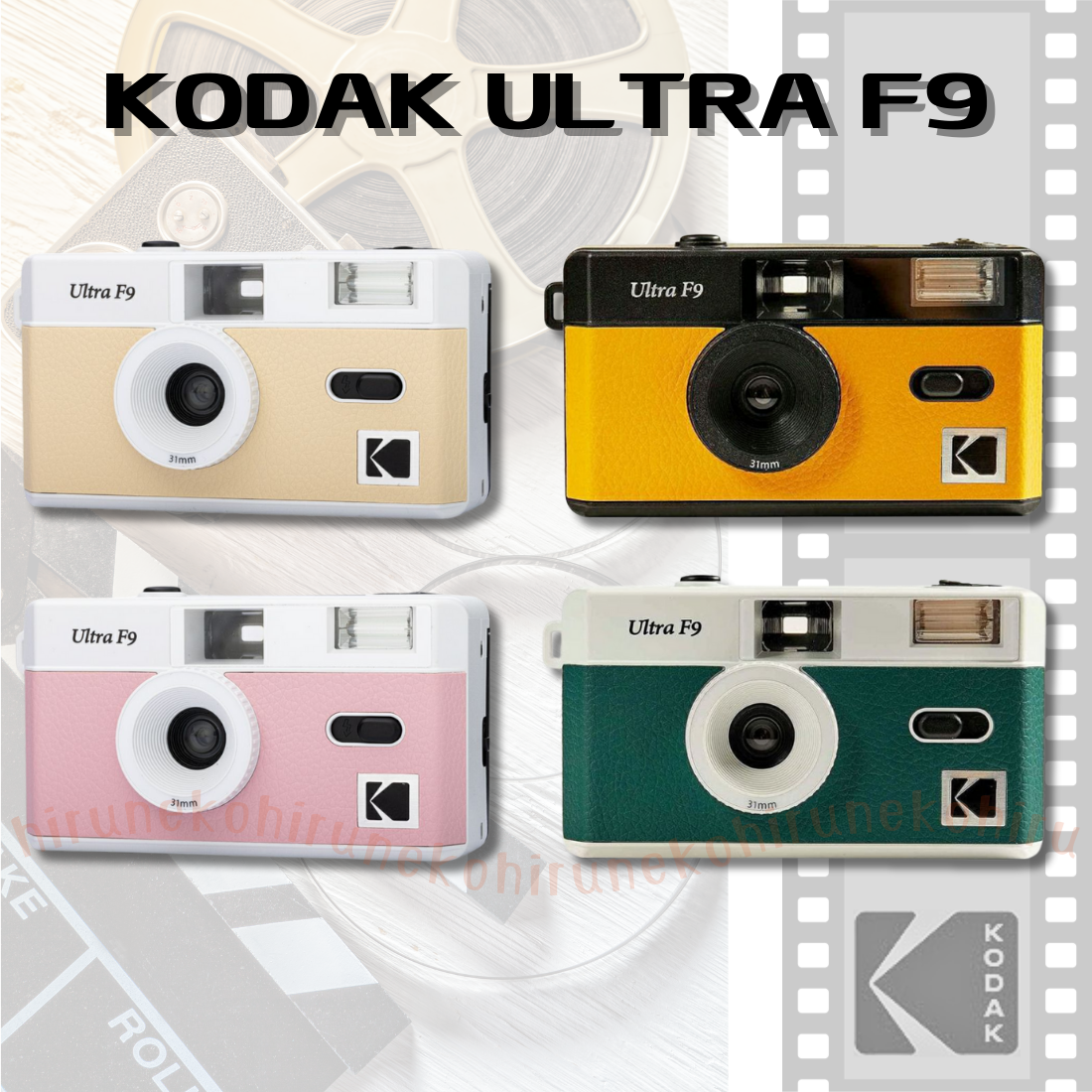 KODAK コダック ULTRA F9 フィルムカメラ レトロ パステル ライトベージュ ベビーピンク ブラック×イエロー ホワイト×グリーン