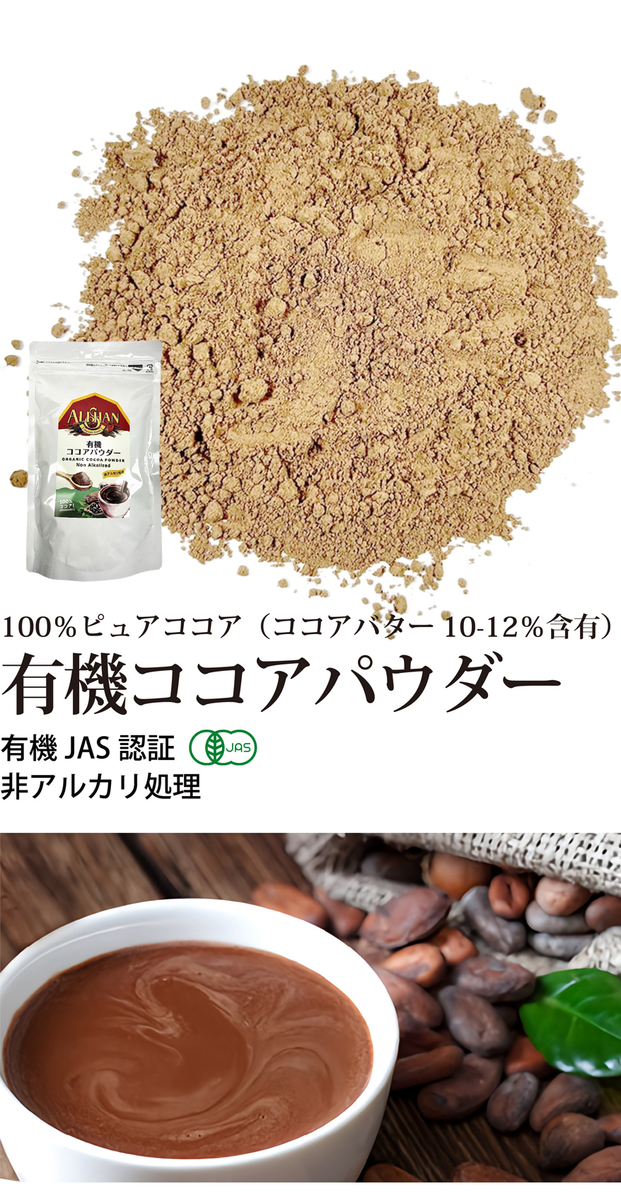 本製品のココアは、非アルカリ処理でカカオ本来の香りと酸味をそのまま楽しめる、オーガニックのピュアココアパウダーです。