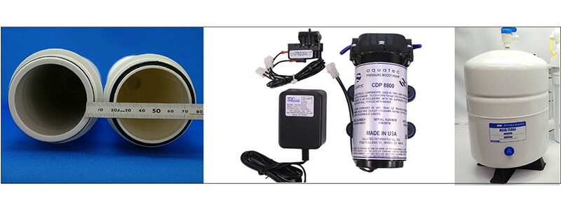 7LプレッシャータンクRO(逆浸透)膜搭載のアクアテラは水を1千万分の1ミリの分子サイズで抜き出します。