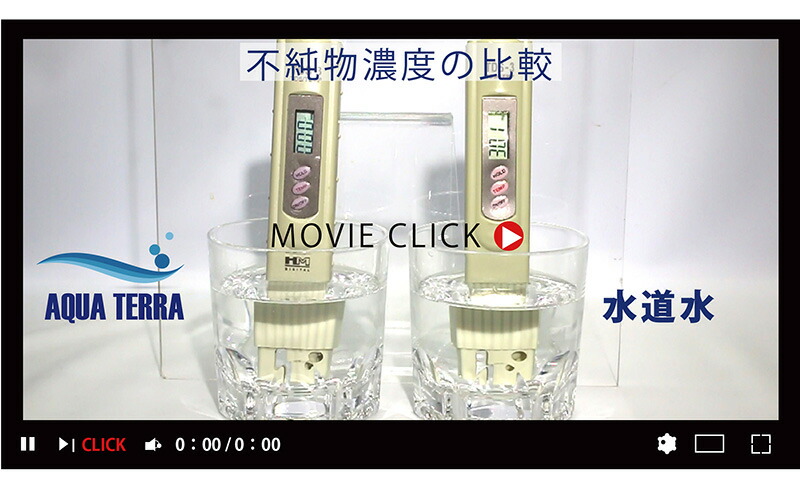 アクアテラで浄水すると、0ppm、不純物をすべて除去した超純水になります。