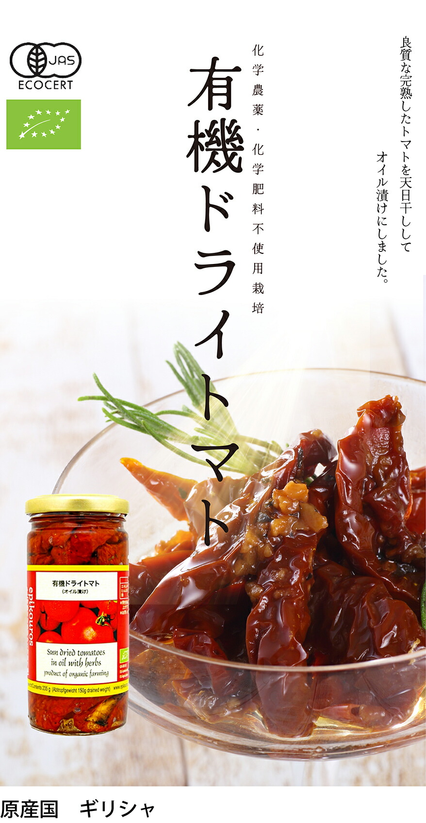 有機ドライトマト本商品を製造しているエピクロス社は、伝統的な製法でドライトマトを製造しています。