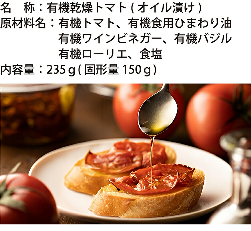 原材料有機トマト、有機食用ひまわり油、有機ワインビネガー、有機バジル、有機ローリエ、食塩