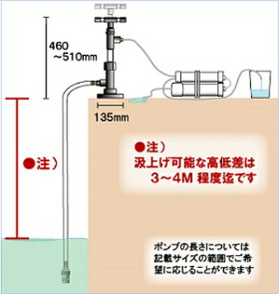 ポンプから3〜4メートル下にある水源でも送水することができます。