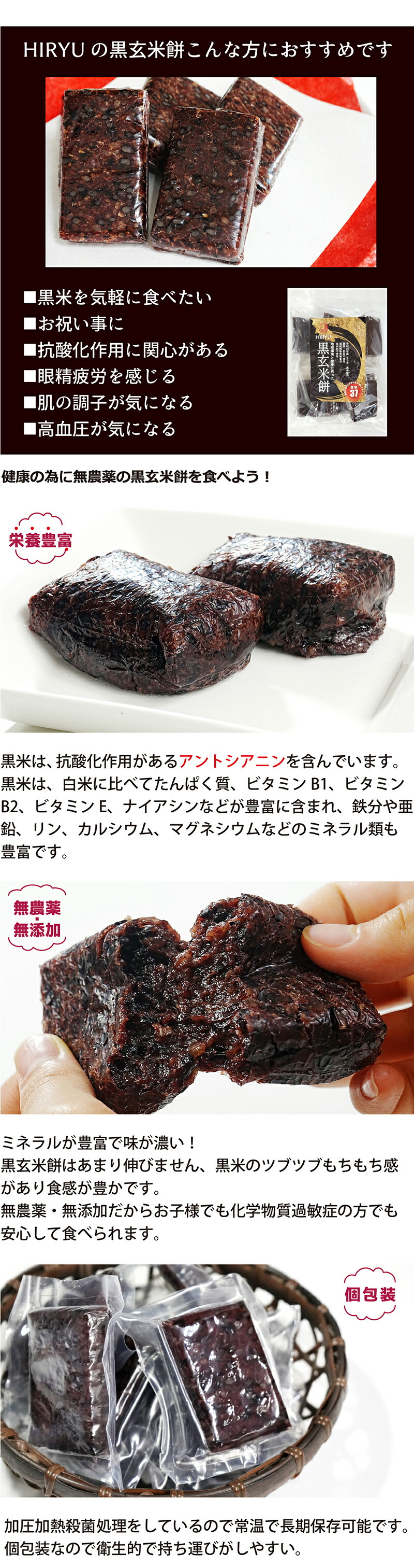 SDGsに貢献する地球環境と健康にやさしい黒玄米餅です!HIRYUでは化学農薬や化学肥料だけでなく、家畜の排せつ物など畜産由来の有機質肥料を一切使用せずに栽培された糯米玄米と黒米のみを使って餅づくりしています。