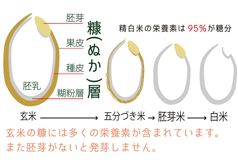 玄米の糠・胚芽には豊富な栄養が含まれており、精米された糯米は殆どが糖分になってしまいます。
