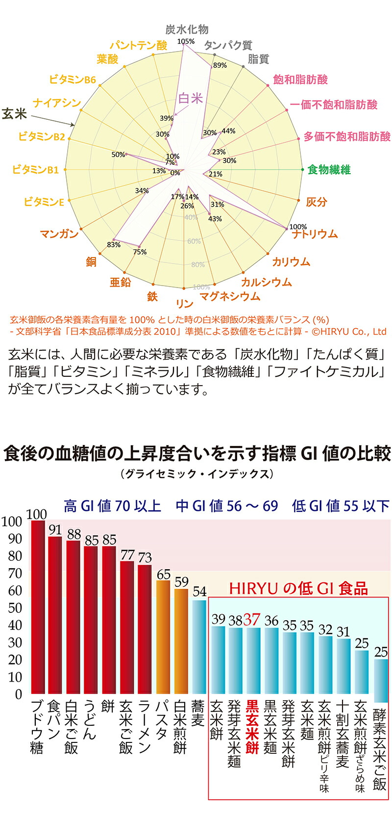 HIRYUの玄米餅は血糖値が上がりにくい低GI食品です。糖尿病などの生活習慣病が増加する中、健康の目安となるのが、食後の血糖値の上昇度合いを示す指標「GI値」(グライセミック・インデックス)です。