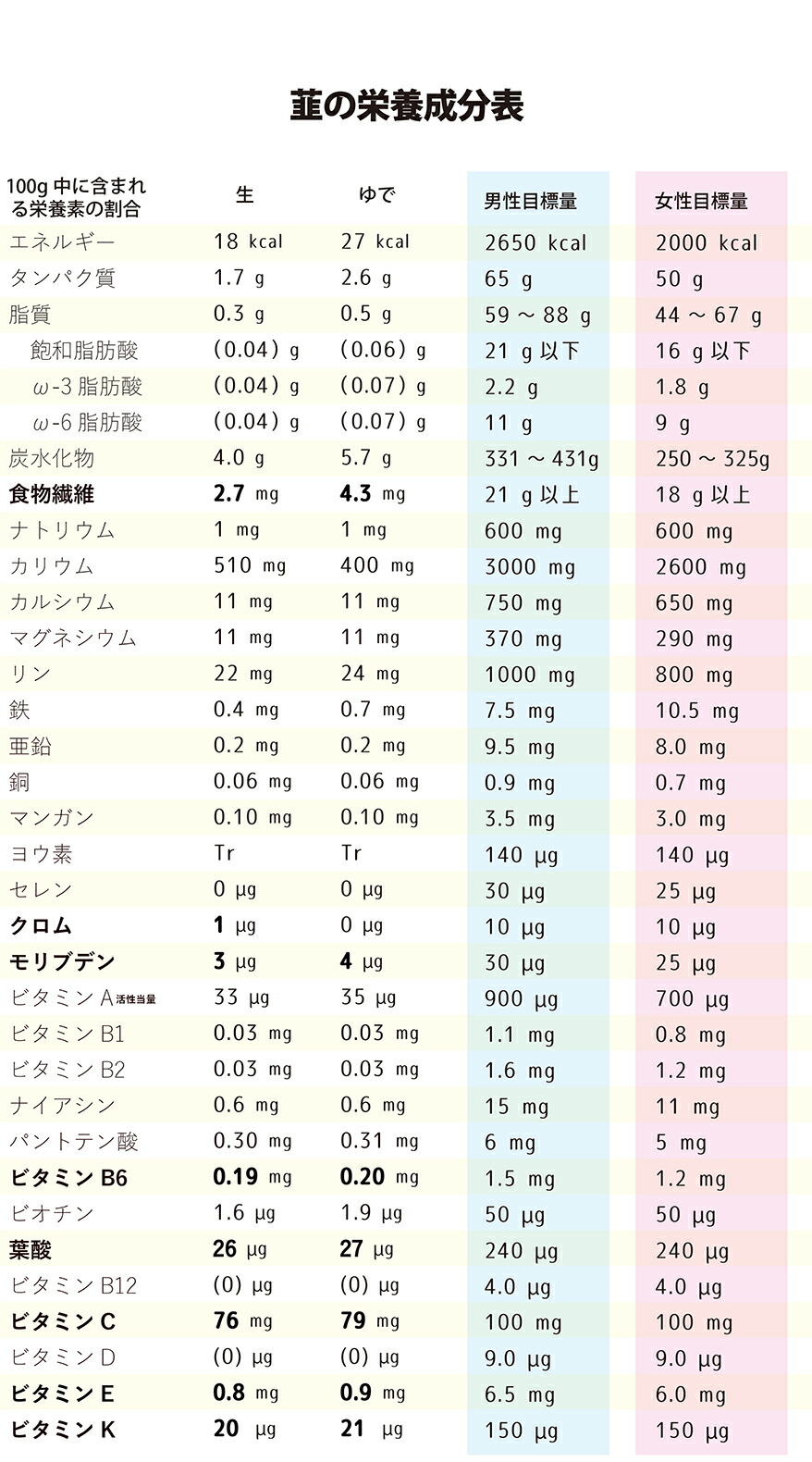 豊富な栄養素を含む食材栄養面でも韮は非常に優れています。