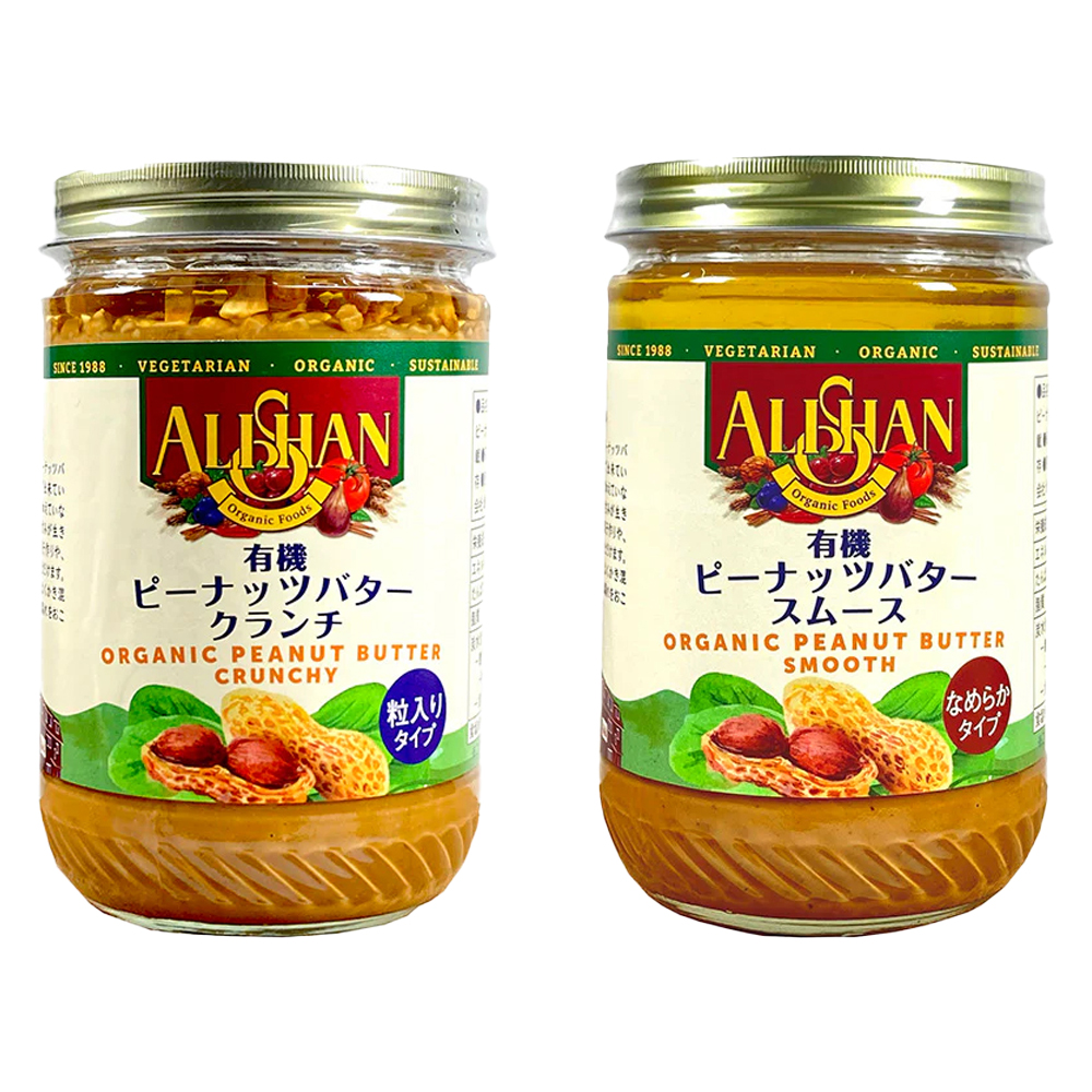 有機ピーナッツバター クランチ + スムース 合計2個 各454g 食べ比べ アリサン(ALISHAN)