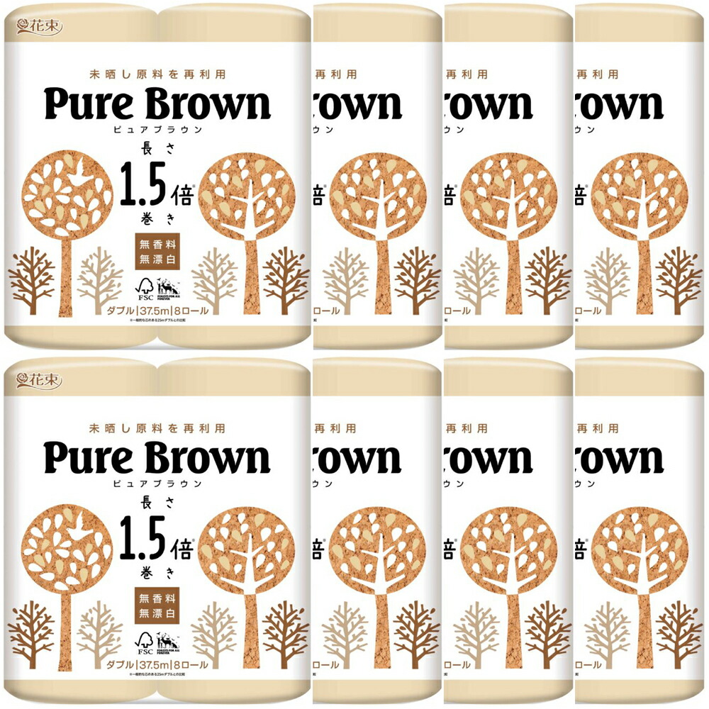 花束 ピュアブラウン 8パック 64ロール 1.5倍巻き 長持ち 無漂白 無香料 ナチュラル ブラウン 未晒し トイレットペーパー ダブル 長巻き 丸富製紙
