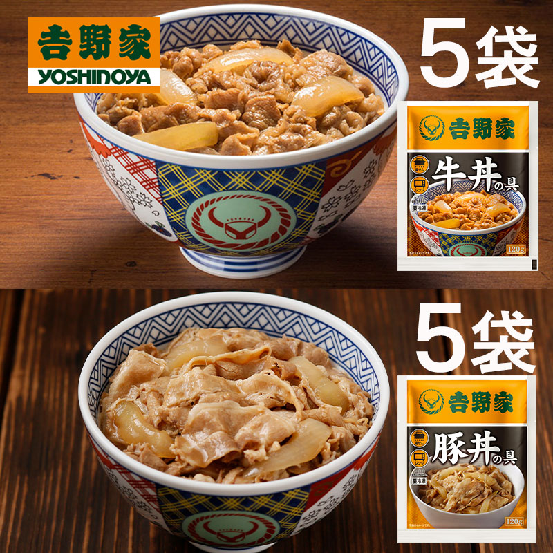 【送料無料】吉野家 牛丼の具 豚丼の具 120g×各5袋 計10袋セット | HIS お取り寄せグルメ おうちごはん 簡単調理 ID:H0060042