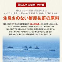 | 原材料/アレルギー | ●すけとうだらの卵(ロシア又は米国)、発酵調味料、食塩、昆布だし、風味調味料、唐辛子、たん白加水分解物、酵母エキス/調味料(アミノ酸等)、甘味料(ソルビット)、酸化防止剤(V.C)、ナイアシン、発色剤(亜硝酸Na)、酵素 ※本製品工場では大豆を含む製品を生産しています |