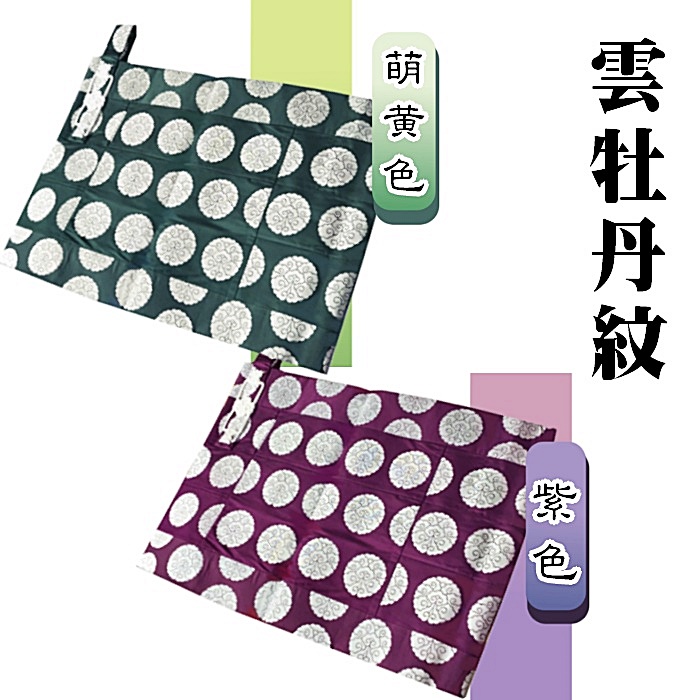 京都西陣織 五条袈裟 雲牡丹紋 萌黄・紫 紋白 交織