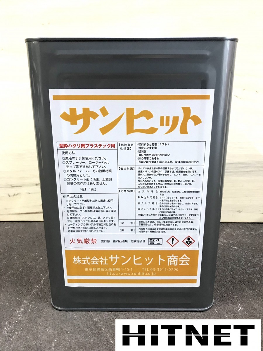 コンクリート用型枠剥離剤 サンヒット プラスチック用 18L