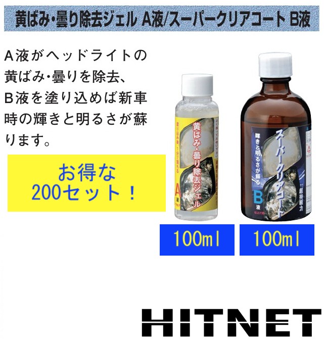 ※このページは、黄ばみ・曇り除去ジェルA液/スーパークリアコートB液 200mlセットの販売ページとなります。