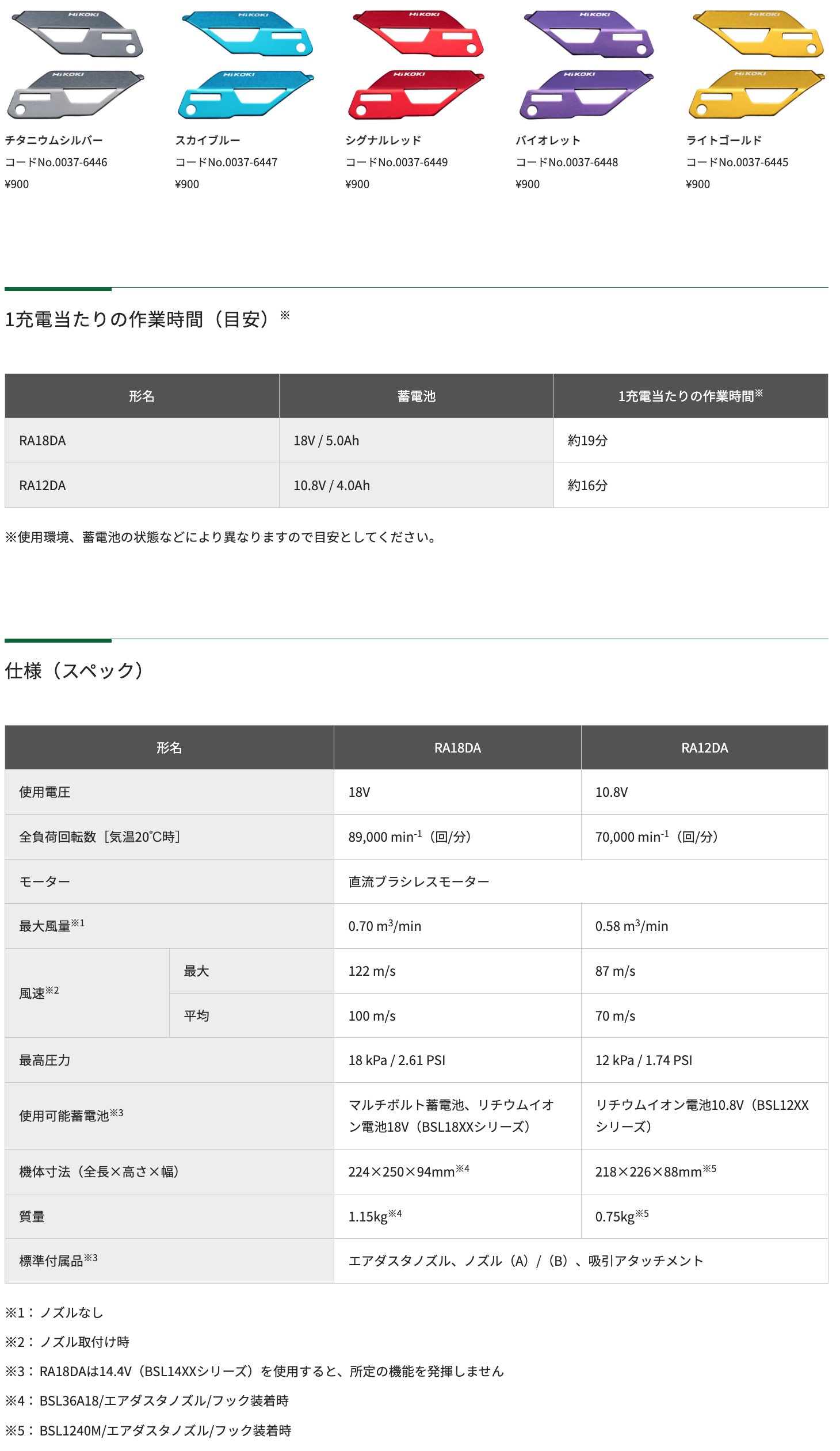 ※RA18DAは14.4V(BSL14XXシリーズ)を使用すると、所定の機能を発揮しません。