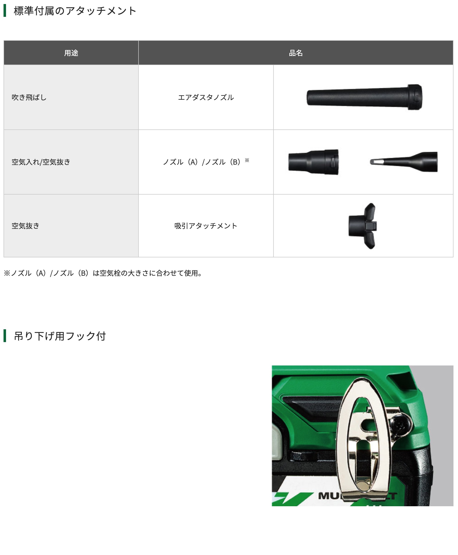 ※BSL36A18/エアダスタノズル/フック装着時