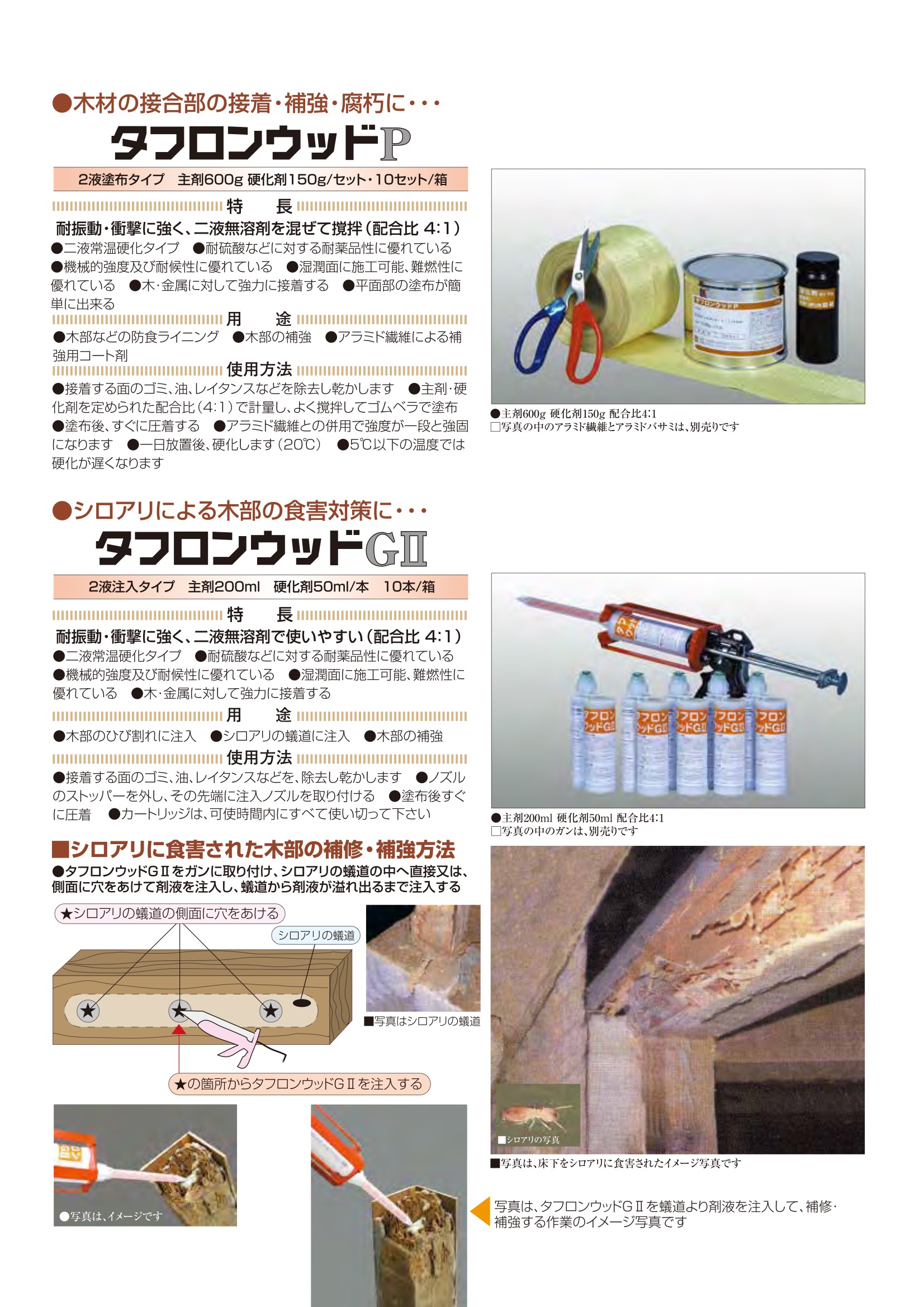 タフロンウッドP 750gセット×10 2液塗布タイプ 木材接合部の接着 アラミド補強 腐朽