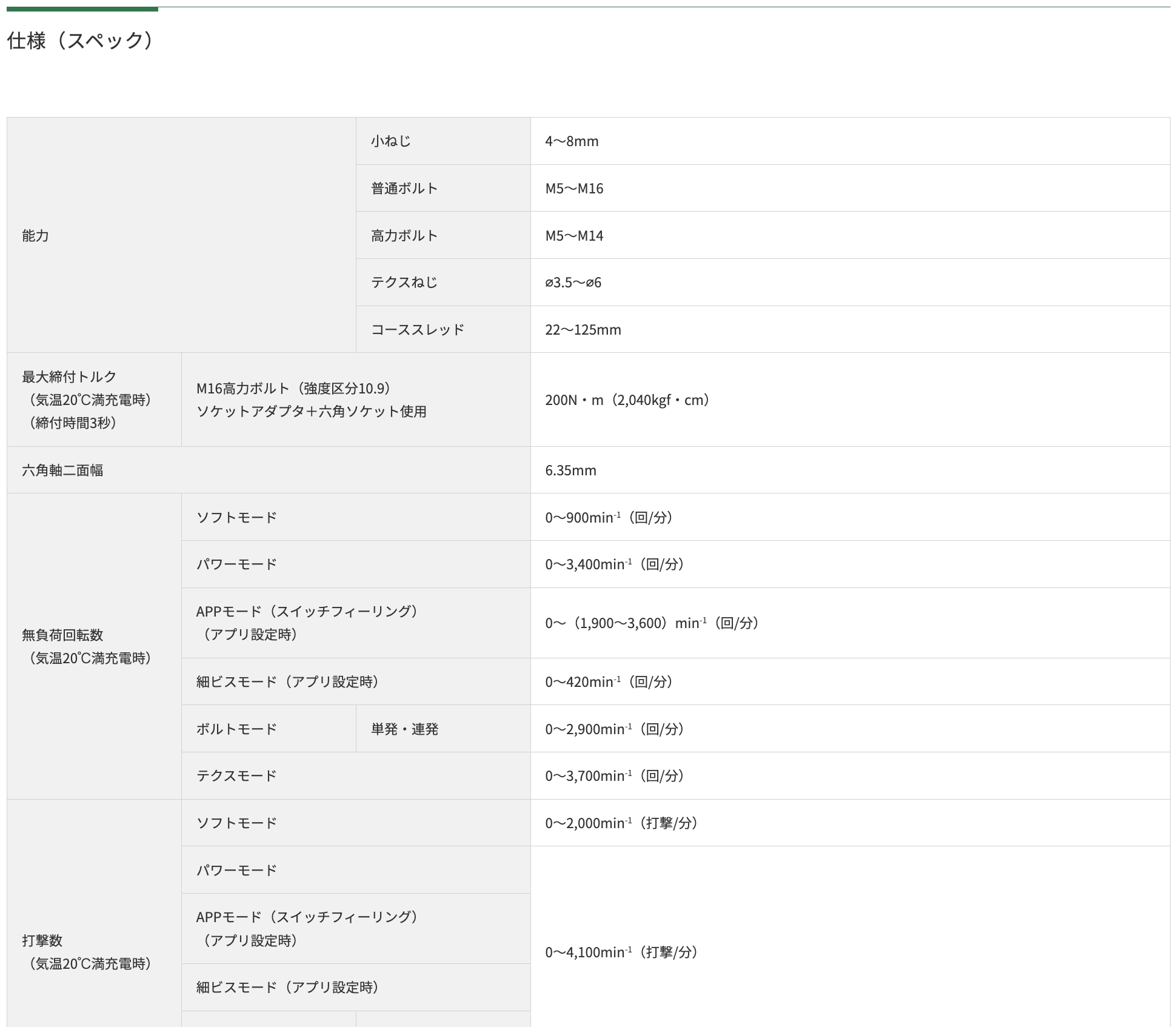 ・最大締付トルク(気温20°C満充電時)(締付時間3秒)