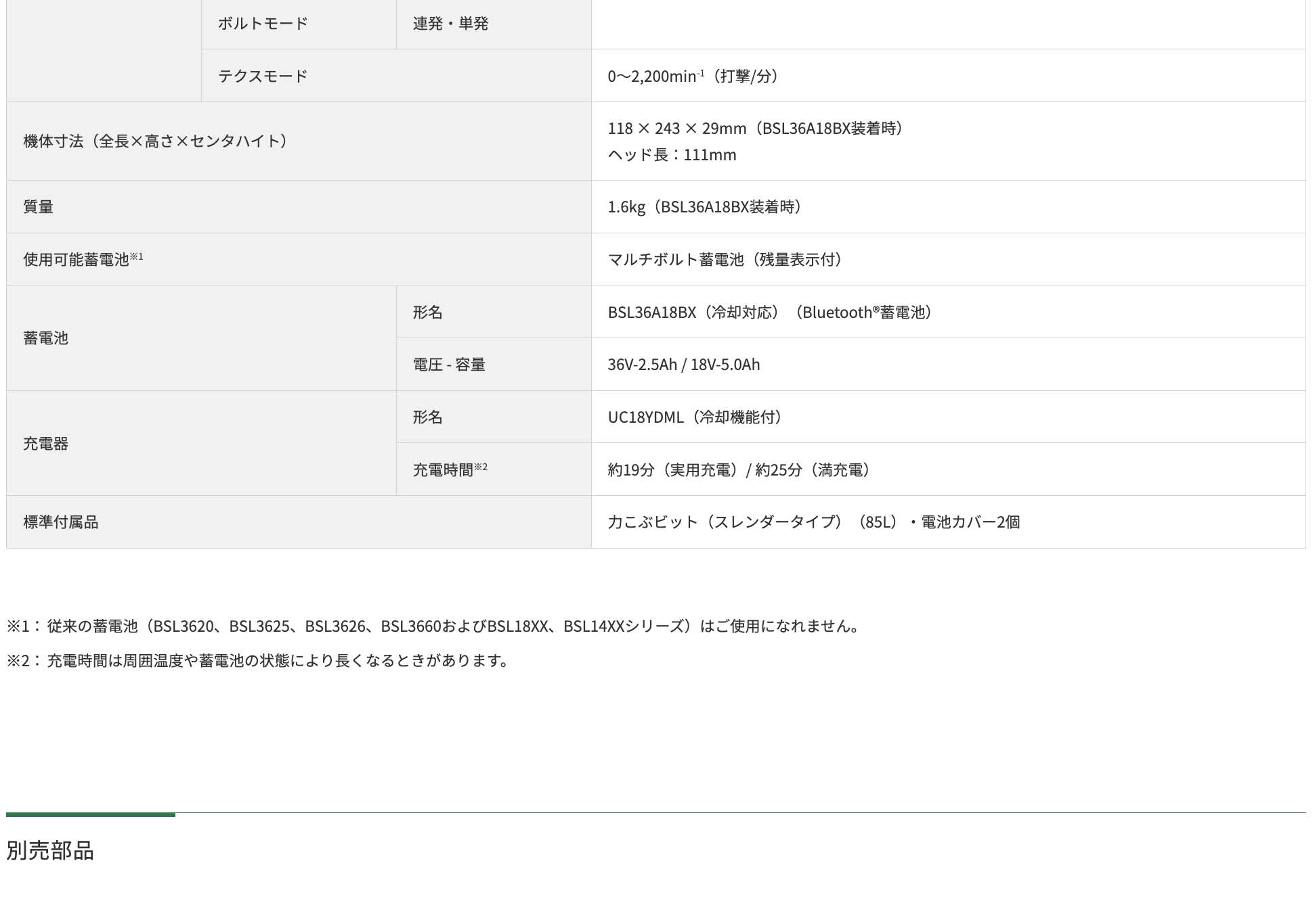 電圧-容量:36V-2.5Ah / 18V-5.0Ah