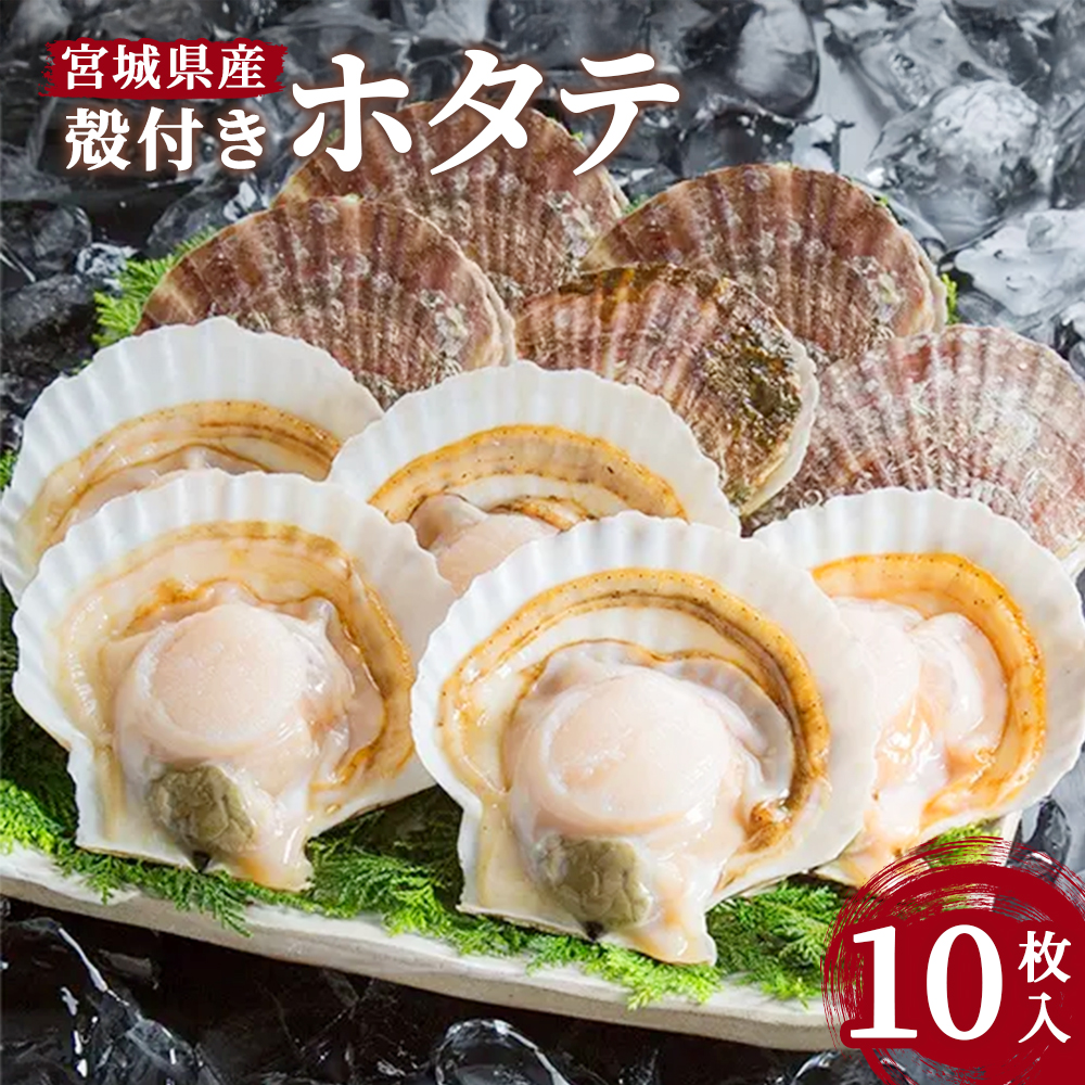 宮城県産 殻付き ホタテ 刺身 10枚 BBQ 国産 冷凍 貝柱 生食 ほたて 帆立 殻付きホタテ バーベキュー 贈り物 ギフト 新鮮 おすすめ 人気 大きい 鍋 フライ