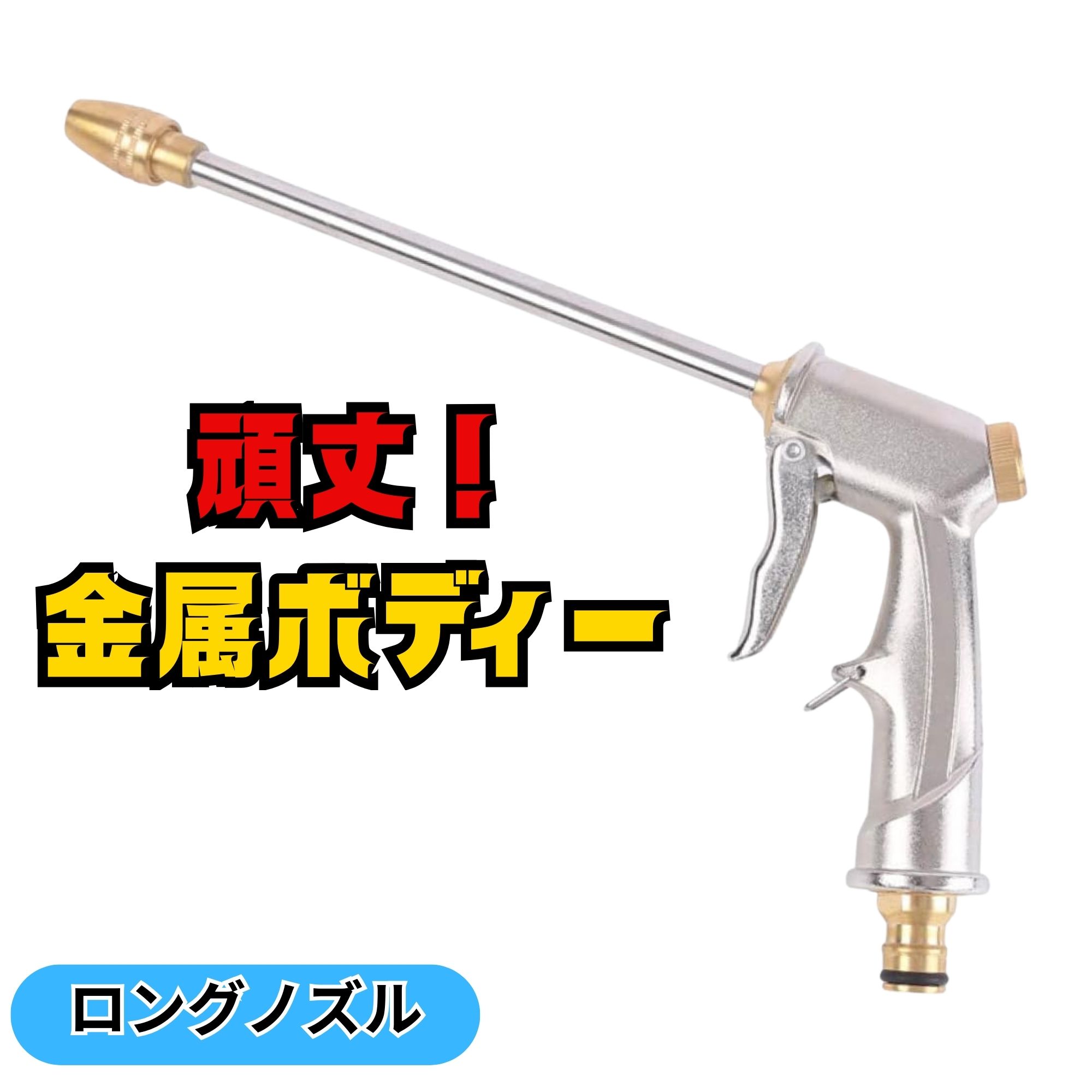 散水ノズル ホースノズル 金属 メタル 高圧 強力 ホース シャワー ヘッド 洗車 園芸 散水機 メタルガン ノズル ロング