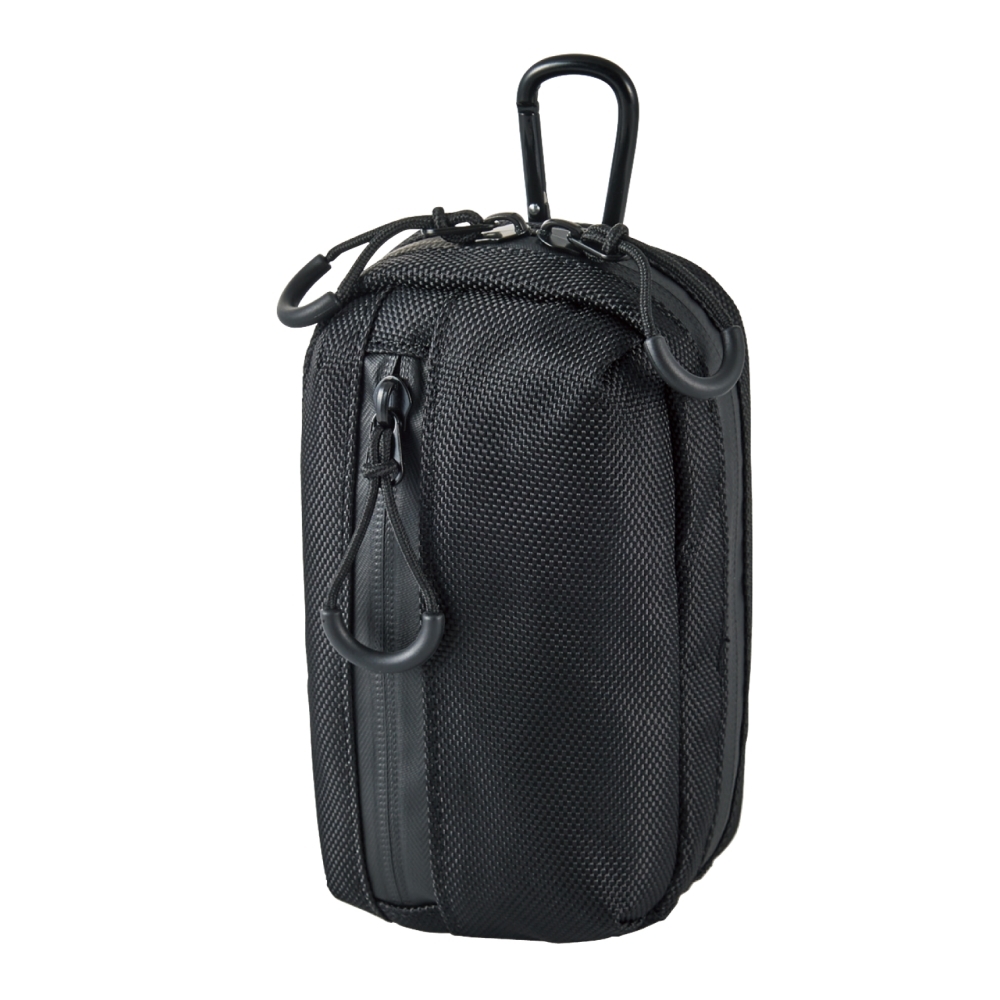 ■外形寸法:幅90mm×奥行60mm×高さ155mm ※カラビナ部分除く ■参考収納寸法:内寸:幅75mm×奥行40mm×高さ140mm ■ポケット数:外側:前面ファスナーポケット×1 ■カラー:ブラック ■材質:表面:ポリエステル/裏面:ポリエステル ■重量:約105g