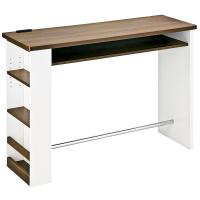 木目が美しいブラウンの天板と、側面のブラックのコントラストがシックなカウンターテーブルです。