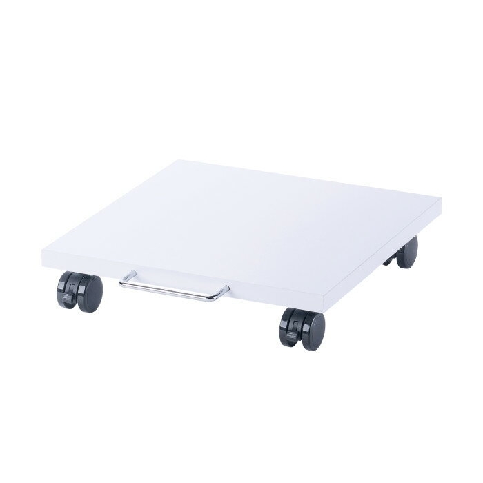 小型A4レーザープリンターなどをデスク下に収納できるスライド式プリンタースタンド。幅400×奥行400mm。