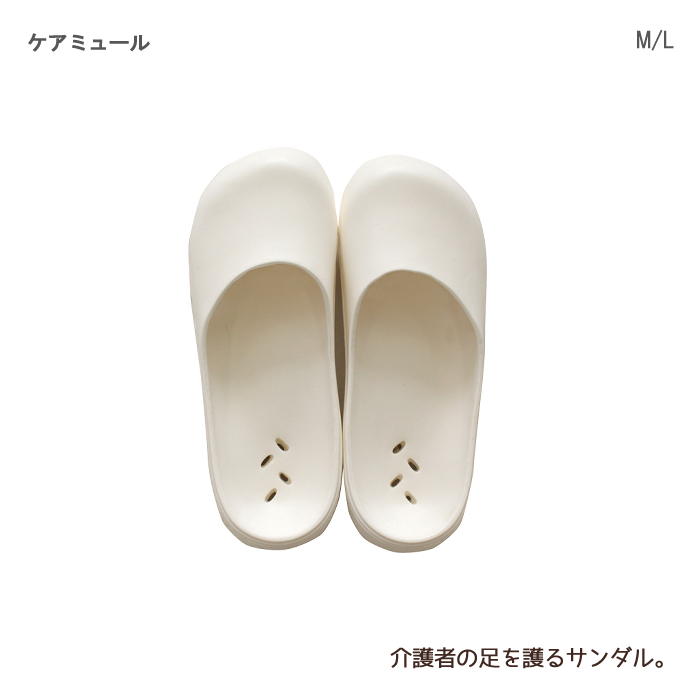 オカ ケアミュール M/L ホワイト 作業用サンダル 入浴 お風呂場 水まわり 滑りにくい 入浴介助 ヘルパー