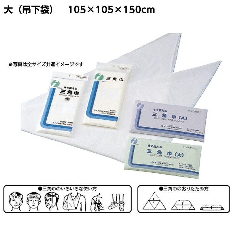 三角巾 規格:大(吊下袋) サイズ:105×105×150cm 救急用品 救急処置 腕つり布