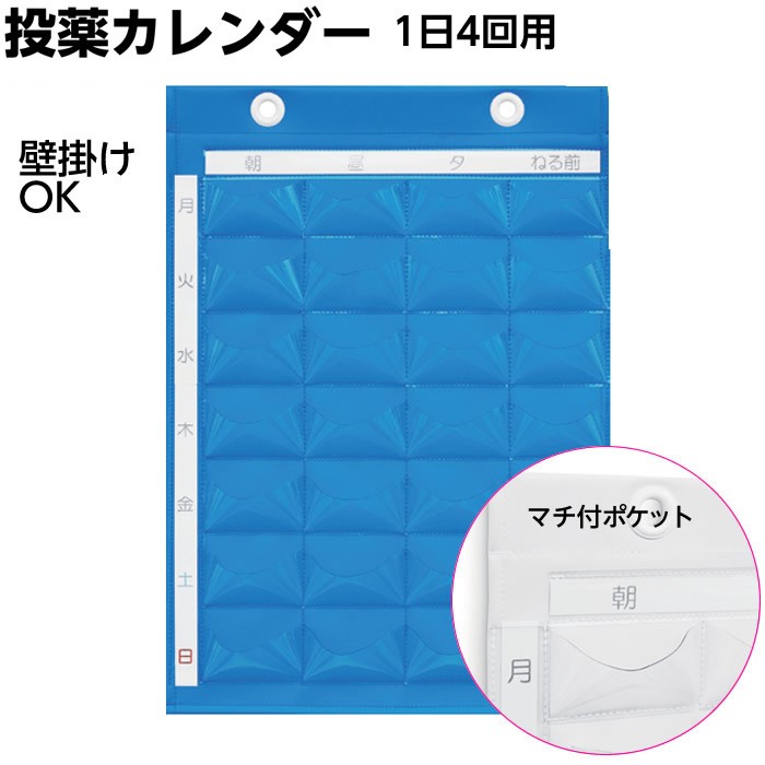 商品特長 | 在宅介護・服薬指導に最適! お薬やサプリメントの飲み忘れ防止に!1週間分をちゃんと管理できる便利な薬ポケット。 1日4回分×1週間分。出し入れしやすいマチ付きのポケット。 朝・昼・夜・寝る前 |