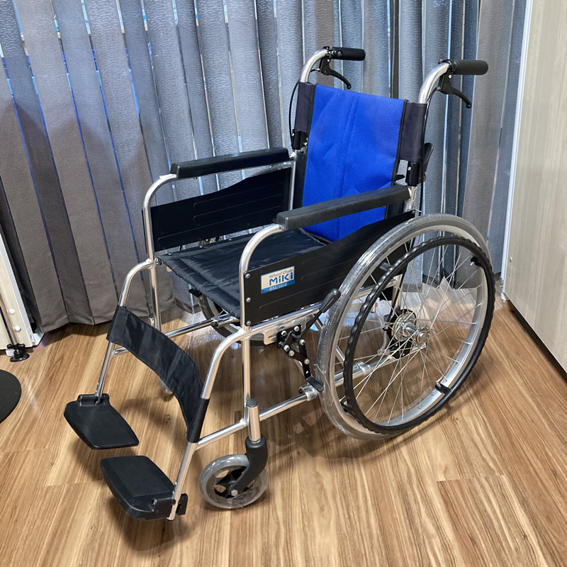 | 商品特長 | ●自走式車椅子 病院や施設での使用に最適。ハイポリマータイヤ仕様のリーズナブルモデル。 シンプルで操作がしやすく、標準的な装備が揃った軽量アルミ製の車いすです。 折りたためてコンパクトに収納できます。ミキの車いすは折りたためて、収納や持ち運び、車への積み込みにも適しています。 空気入れの必要が無いノンパンクタイヤです。 |