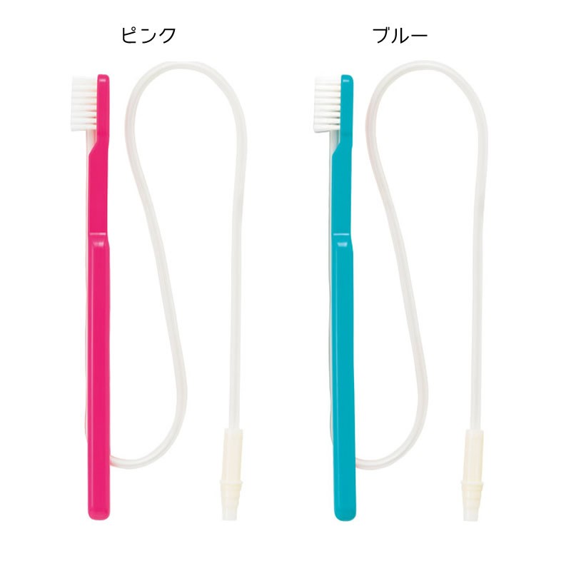 商品特長 | ブラシと一体化したチューブで誤嚥を予防。 ・吸引しながら歯磨きできます。 ・吸引器に接続するだけで簡単に使える吸引チューブ付ブラシです。 ・ブラッシング中の水分・汚れを吸引しながら安全に歯垢を除去できます。 |