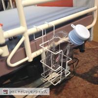 | こんなお悩みに | 尿瓶を使うのは良いが起き場所に困る。横置きにすると不安定だし、夜間きっちり置けて倒れない尿器掛。ベッドサイドのレールに掛けられます。 |