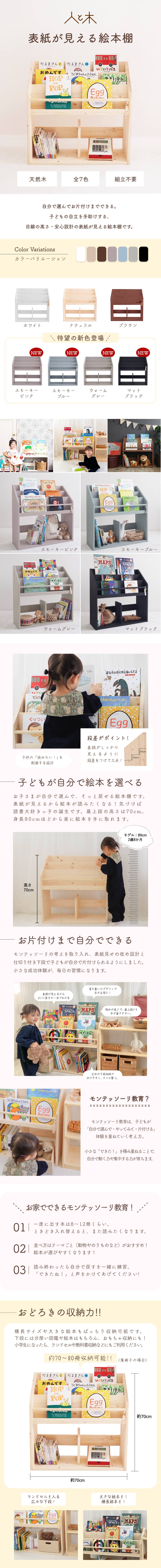 | 商品名 | 表紙が見える絵本棚 Mサイズ(ナチュラル・ブラウン・ホワイト・スモーキーピンク・スモーキーブルー・ウォームグレー・マットブラック) |