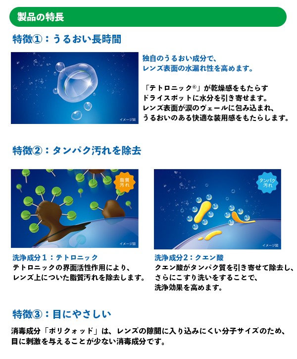 ●独自のうるおい成分でレンズ表面の水漏れ性を高めます