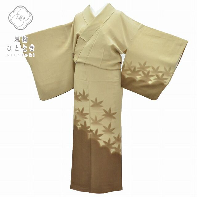 リサイクル着物 付下げ 中古 正絹 仕立て上がり 袷 茶色系 紅葉文様 rr0077b