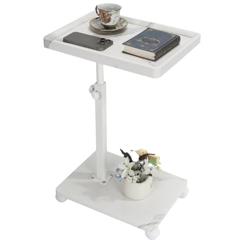 TAIVINN サイドテーブル キャスター付き ベッドサイド テーブル 昇降式 木目調 簡易 高さ調節可能 コの字型 ナイト 移動便利 小さい