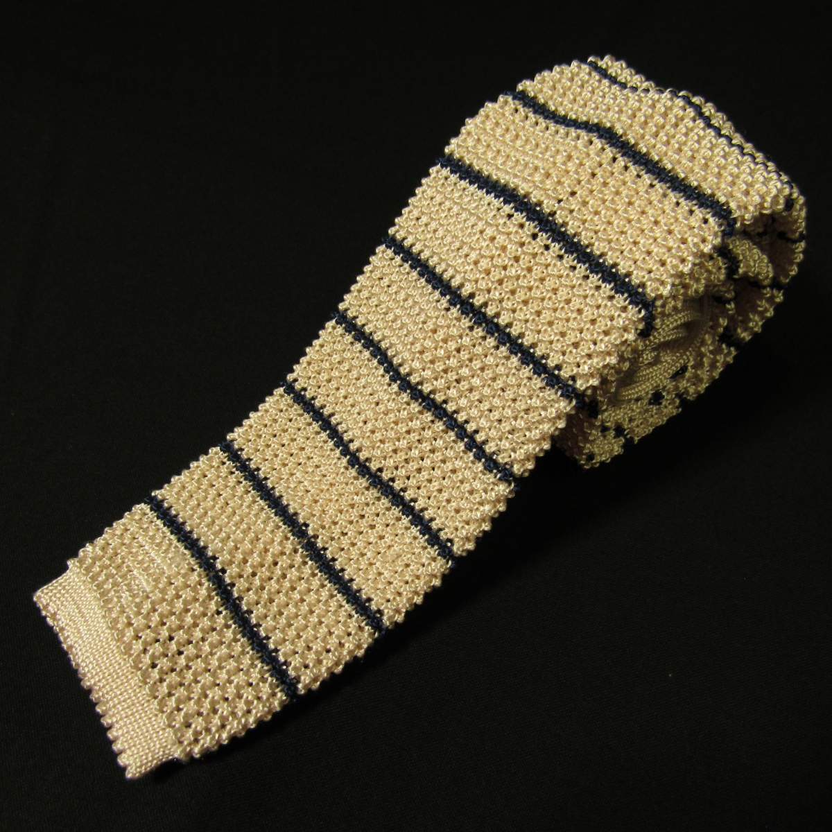 美品 イタリア製 フランコスパダ Franco Spada シルク ニットタイ アイボリー×ネイビー ボーダー