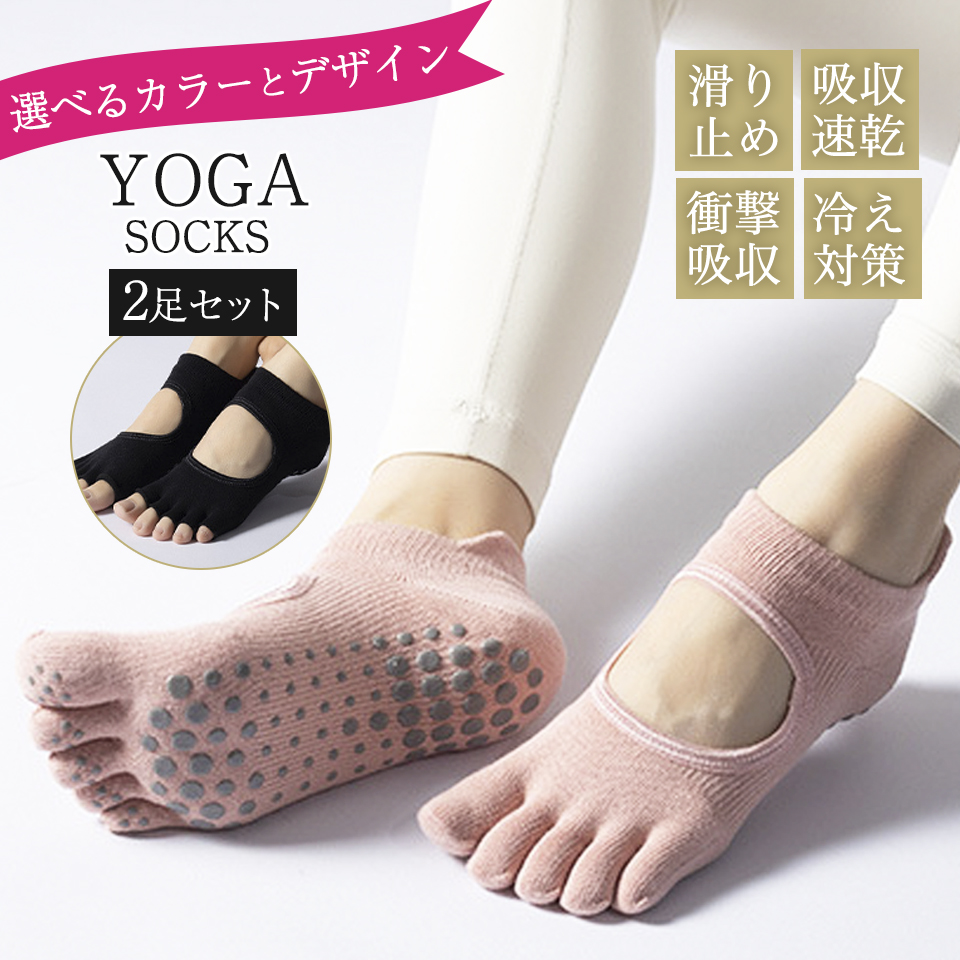 ヨガソックス 滑り止め 5本指 靴下 ピラティス ソックス 指ぬき 選べる 2足 セット 滑らない 保温 吸水 速乾 ヨガ ホットヨガ レッスン ヨガウェア フリーサイズ