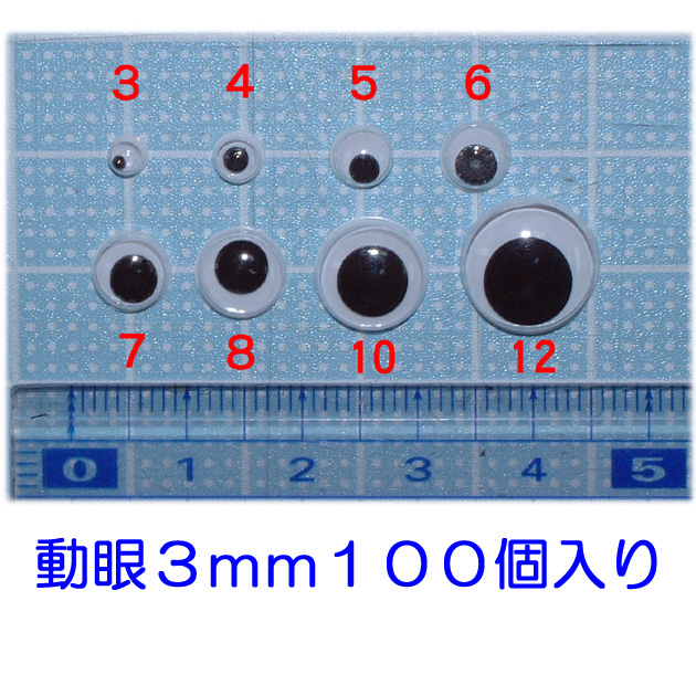 ◎動眼(キョロキョロ目玉)3mmが100個です。