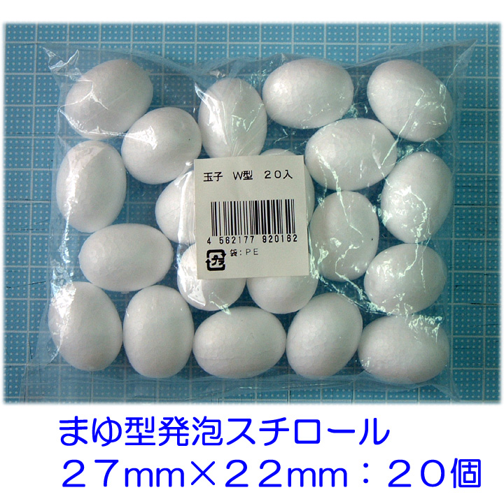 まゆ型 発泡スチロール 27×22mm W 20個 つまみ細工 手芸 工作