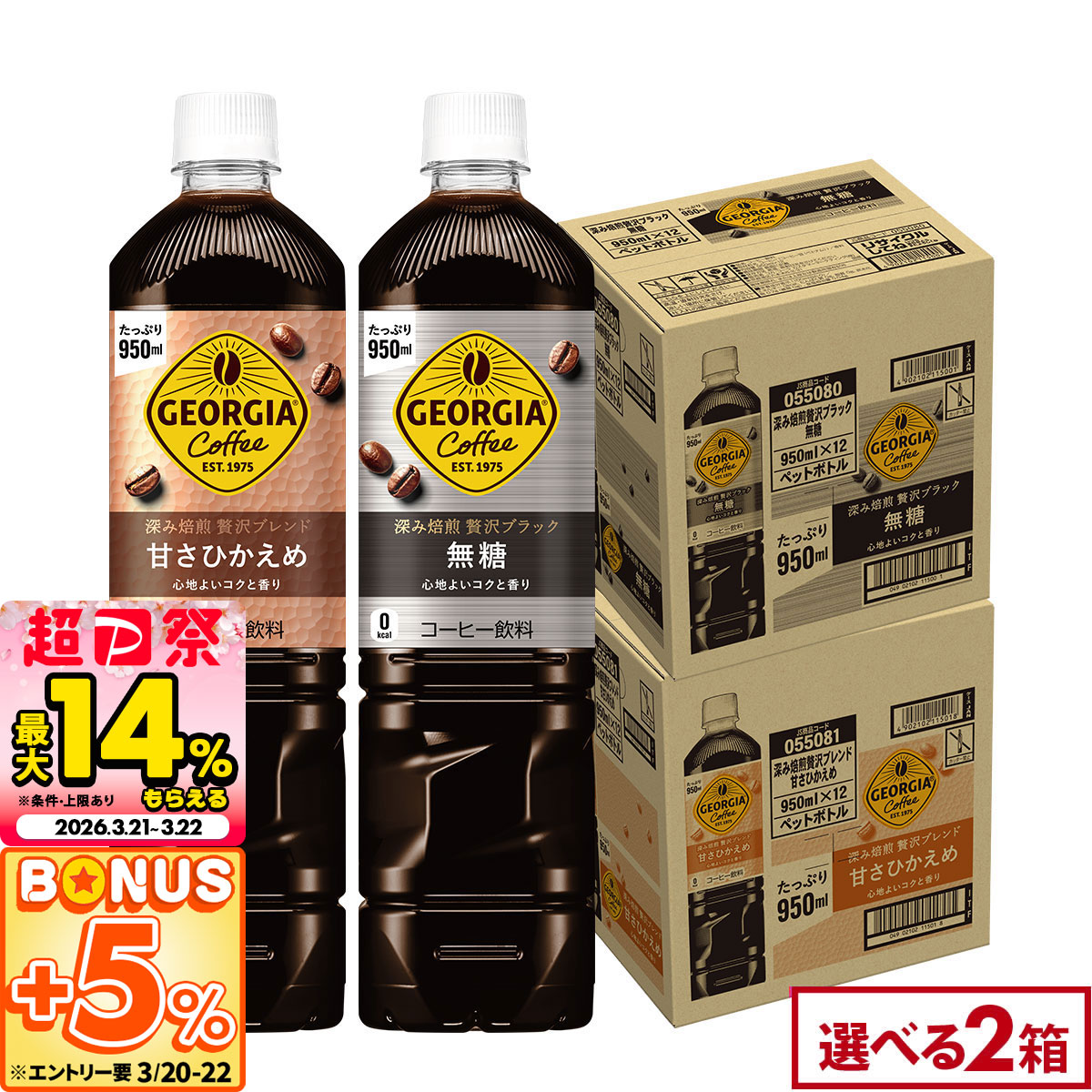 ジョージア 深み焙煎 贅沢ブラック 甘さひかえめ 950ml 24本(12本×2ケース) 選べる よりどり 組合せ自由 アイスコーヒー ペットボトル リニューアル 送料無料