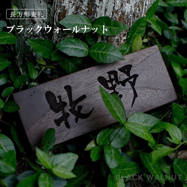 表札 木製表札 ひょうさつ 木製 銘木 マンション ポスト 戸建【簡単!貼るだけ】かわいい 銘木表札 天然木 ブラックウォールナット クルミ表札 9×20cm