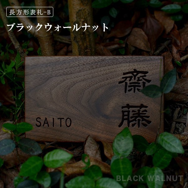 表札 木製表札 ひょうさつ 木製 銘木 マンション ポスト 戸建【簡単!貼るだけ】かわいい 銘木表札 天然木 ブラックウォールナット クルミ表札 11×20cm