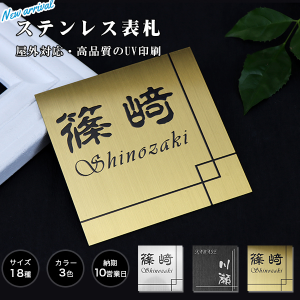 ステンレス表札 オーダー アパート 表札 激安 マンション表札 おしゃれ ポスト表札 玄関 戸建 金属表札 ネームプレート【ステンレス表札 UV印刷 正方形】