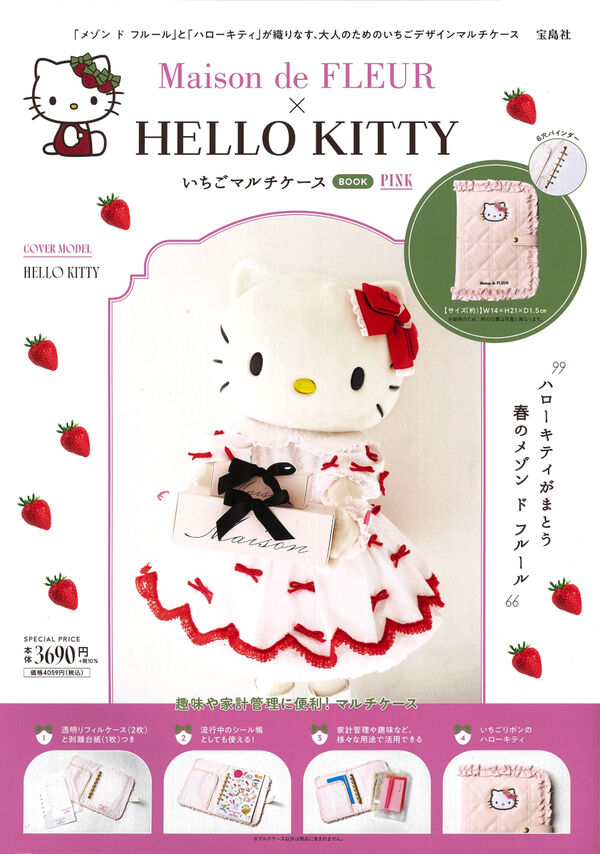 Maison de FLEUR × HELLO KITTY いちごマルチケースBOOK PINK